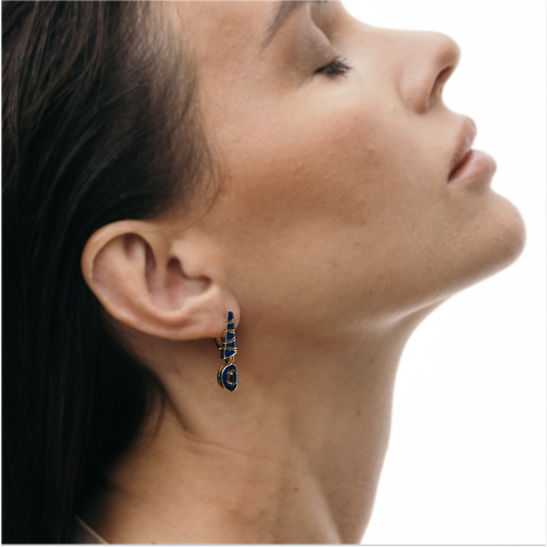 Серьги Пирамида из желтого золота 585 пробы с сапфирами и горячей эмалью