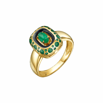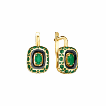 Серьги Россыпь из желтого золота 585 пробы с изумрудами и горячей эмалью