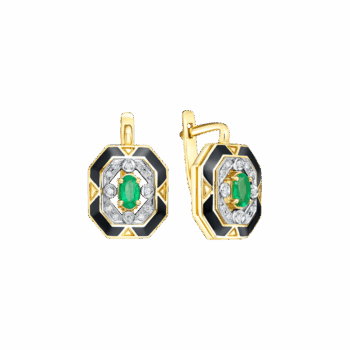 Серьги Терра из желтого и белого золота 585 пробы с бриллиантами и горячей эмалью