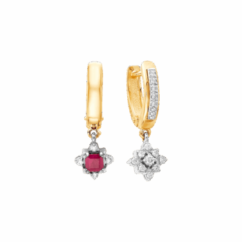 Серьги Трансформер двухсторонние из желтого золота 585 пробы с Рубинами и бриллиантами