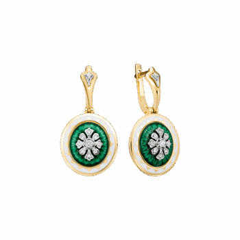 Кольцо Екатерина из желтого и белого золота 585 пробы с бриллиантами, зеленой и белой эмалью