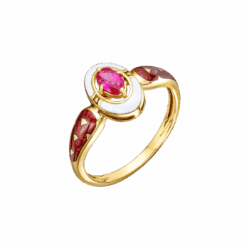 Кольцо Горностай из желтого золота 585 пробы с рубином и горячей эмалью