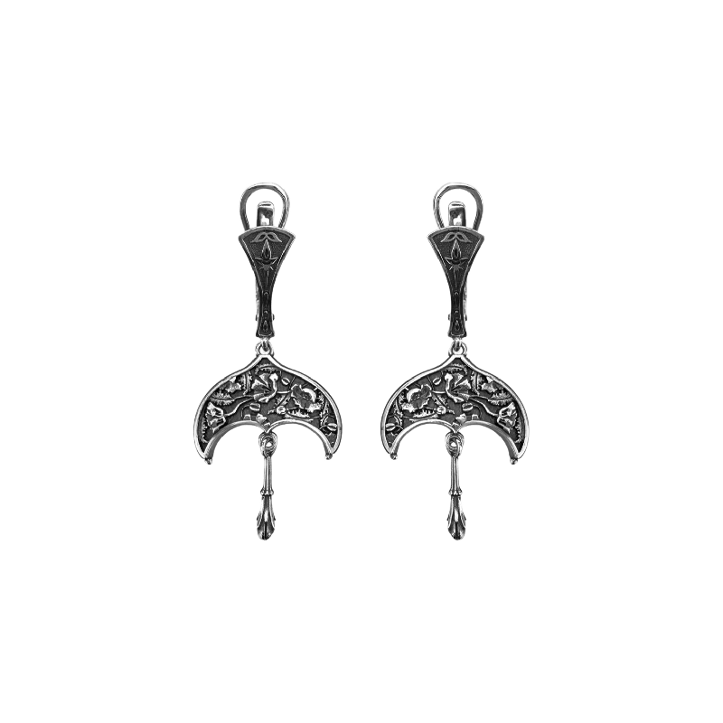 Серьги с природными мотивами из серебра 925 пробы с чернением