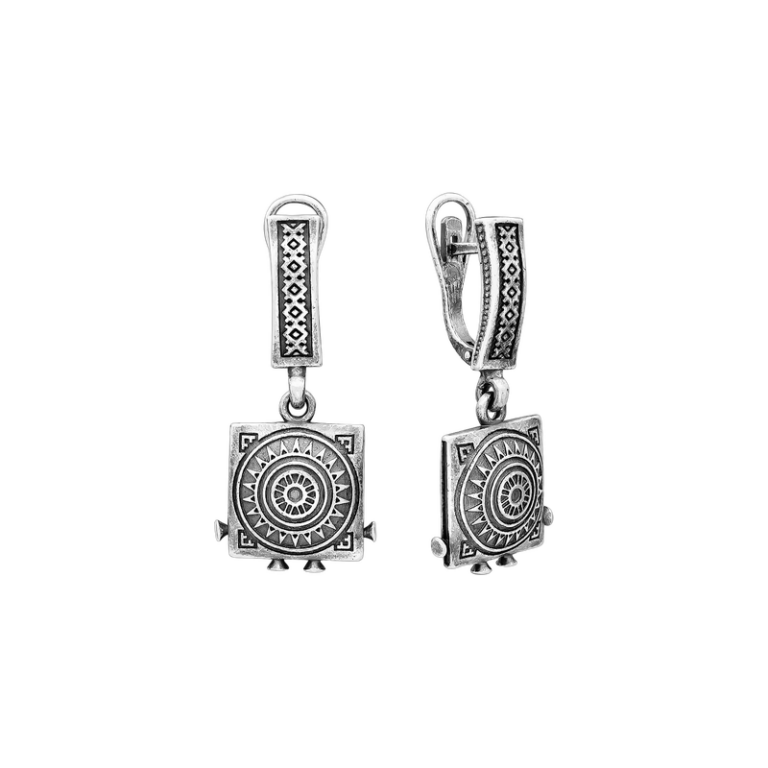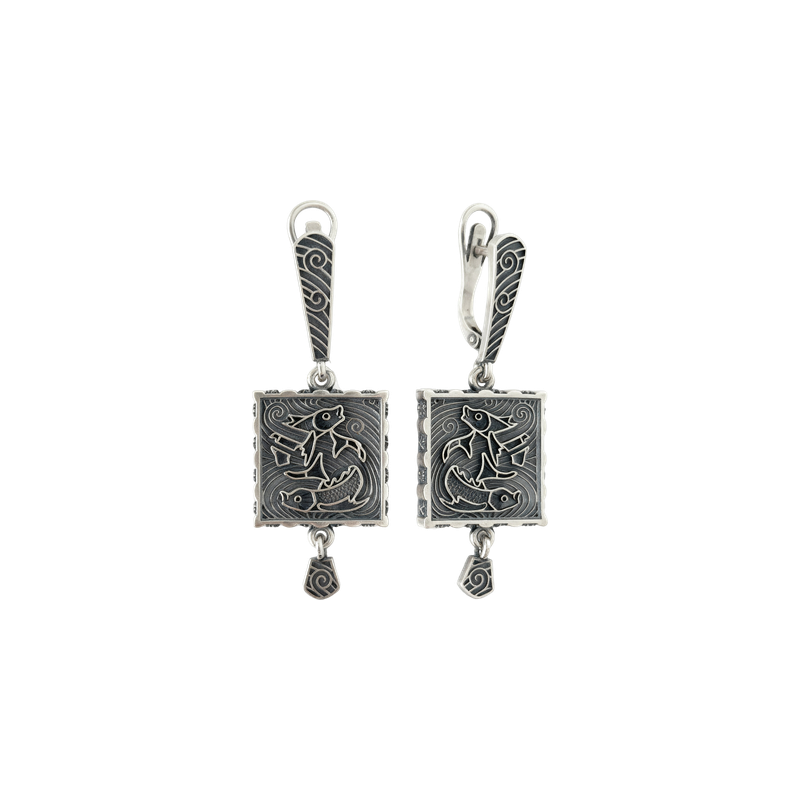 Серьги с морсикими мотивами из серебра 925 пробы с чернением