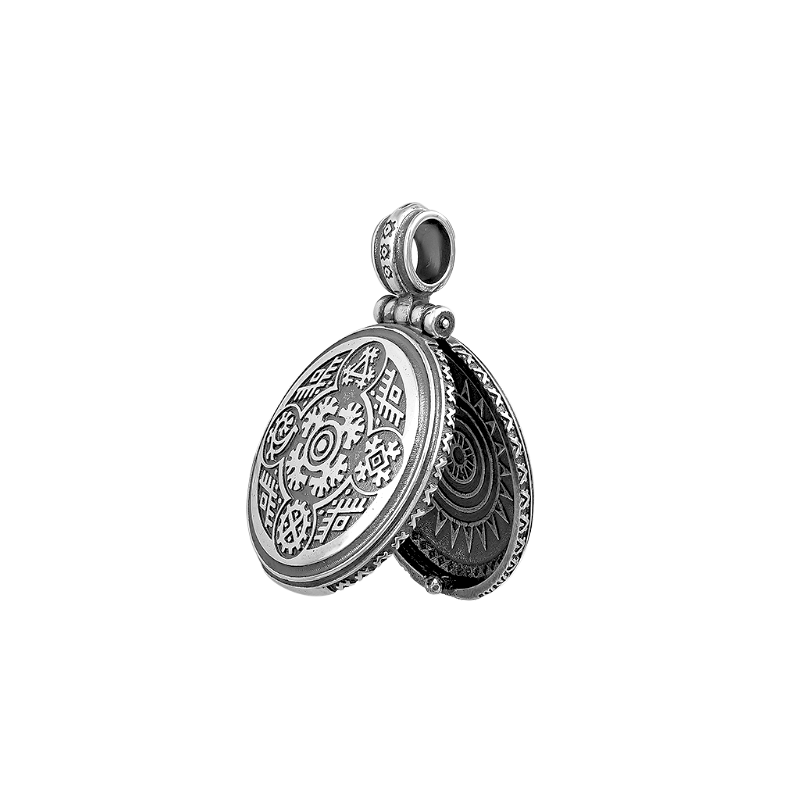 Медальон двухсторонний этнический из серебра 925 пробы с черненрием