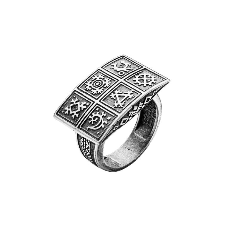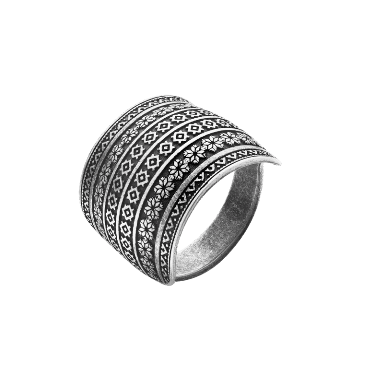 Кольцо с природными мотивами из серебра 925 пробы с чернением