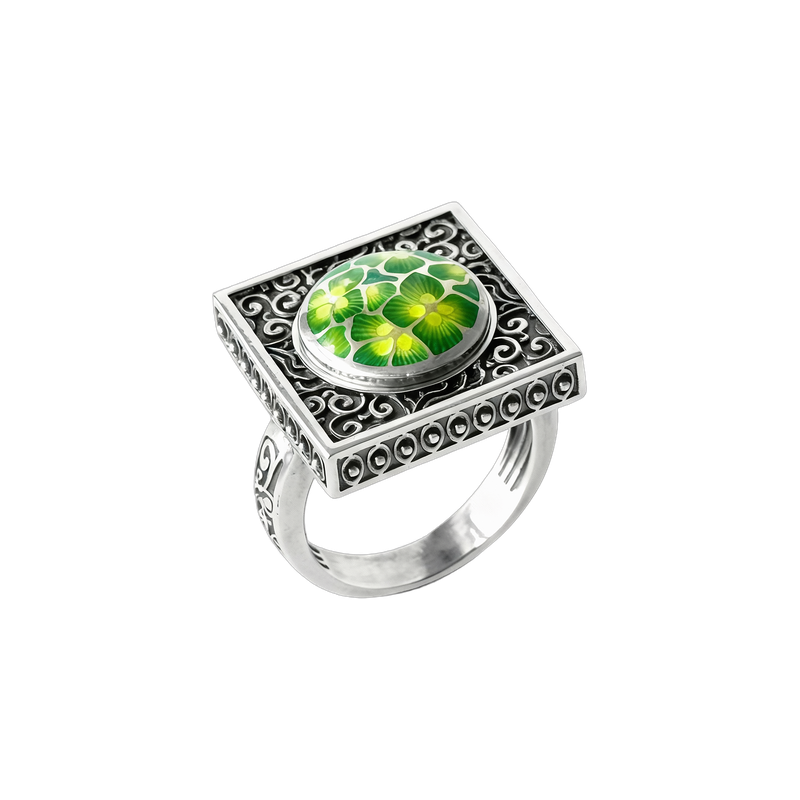 Кольцо с природными мотивами из серебра 925 пробы с горячей эмалью