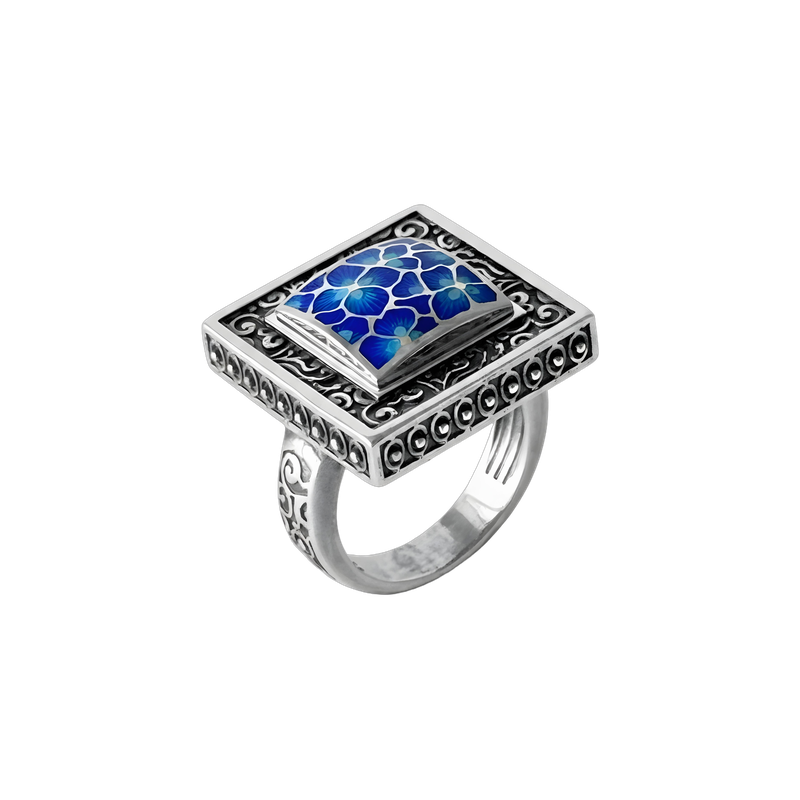 Кольцо с природными мотивами из серебра 925 пробы с горячей эмалью