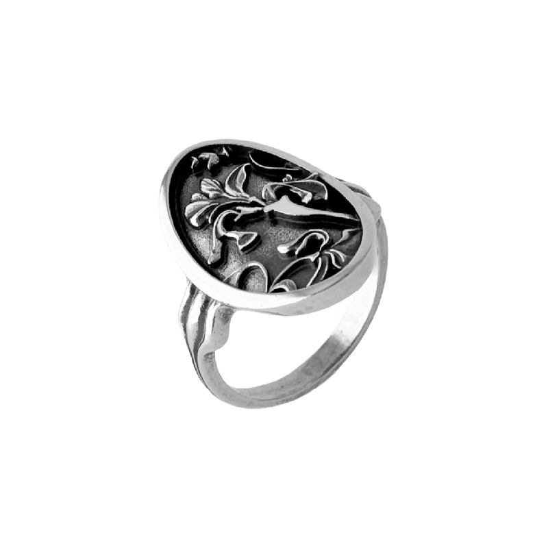 Кольцо с природными мотивами из серебра 925 пробы с чернением